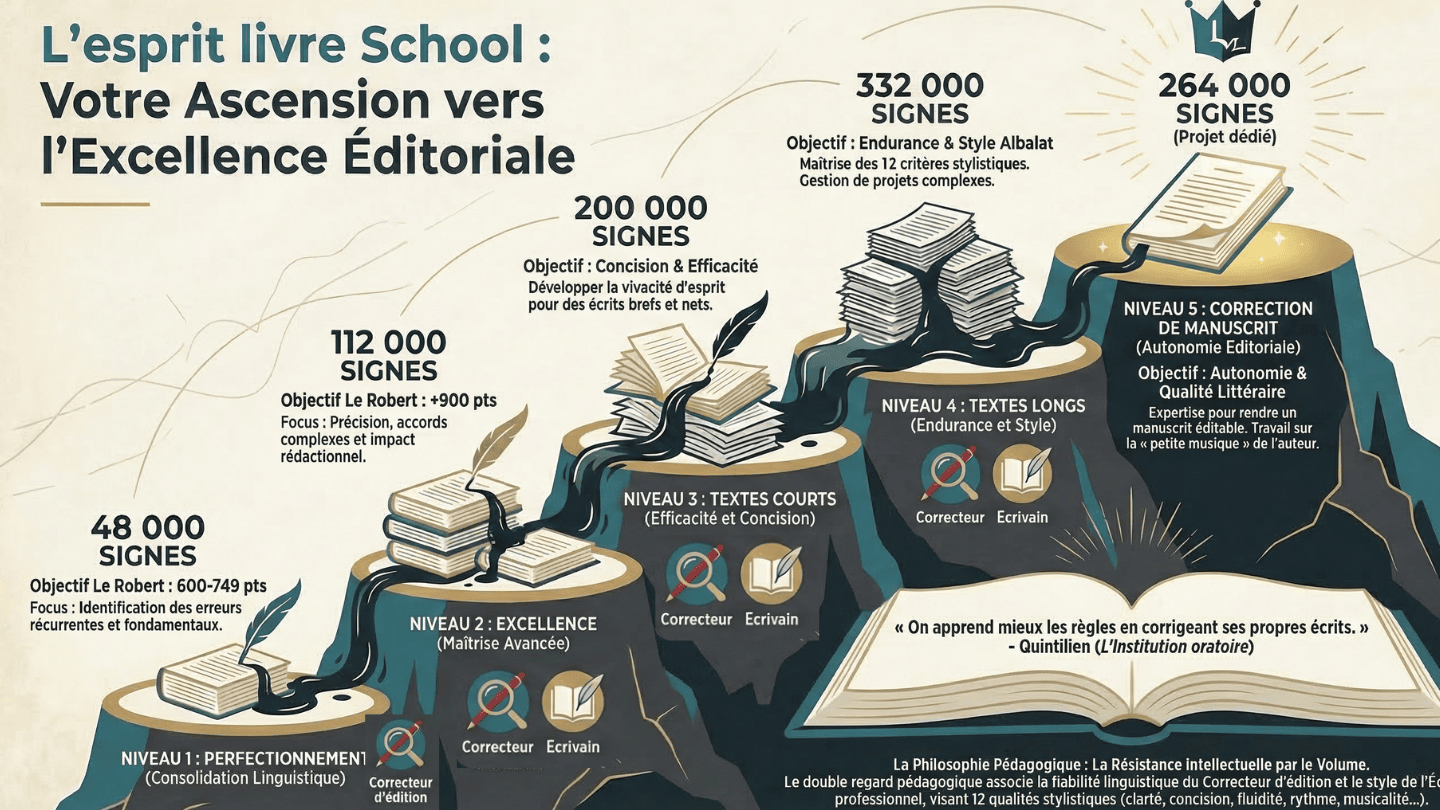 L’art de l’écrit ne réside pas dans l’accumulation de règles, mais dans la maîtrise du geste. Notre parcours a été conçu comme une progression vivante : un cheminement qui transforme la correction technique en une véritable architecture de la pensée. De la sécurisation des bases à l’autonomie du travail sur manuscrit, nous vous enseignons à porter vos textes vers une haute tenue.